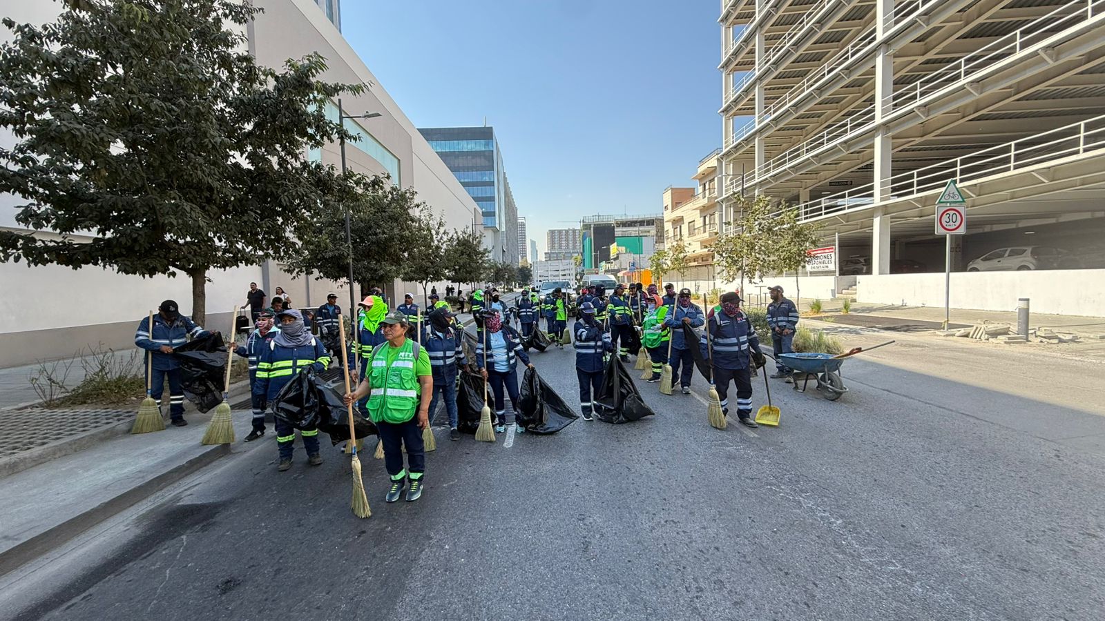 Decenas de elementos de la Secretaría de Servicios Públicos de Monterrey realizaron un operativo de limpieza para recolectar más de dos toneladas de basura luego del desfile por el 115 aniversario de la Revolución Mexicana.